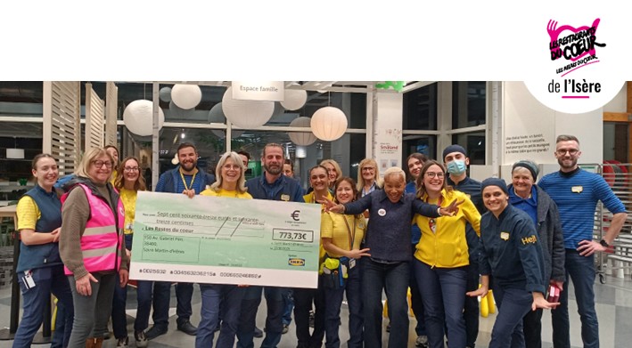 A l’issue de cette soirée, la Vice-Présidente des Restos du Cœur de l’Isère, s’est vue remettre, par la Directrice du magasin, un chèque : la contribution des salariés d’IKEA.